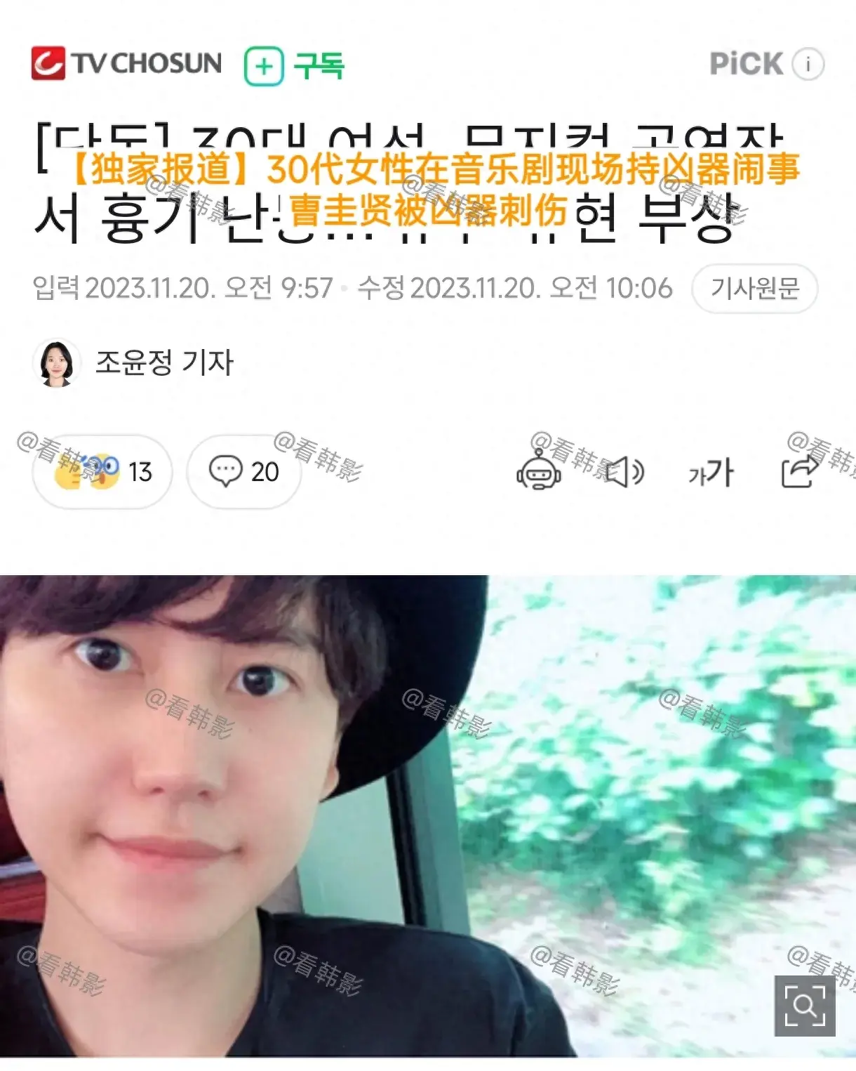 【独家报道】我的天啊 30代女性在音乐剧现场持凶器闹事,曺圭贤受伤!!!#曺圭贤被刀刺伤#