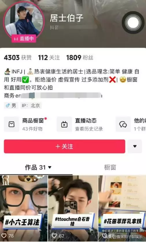 有网友发现,之前参加过《燃烧吧少年》以及《偶像练习生》的爱豆韩沐伯也出家做道士了。现在他开了个叫做“居士伯子”的账号进行日常直播带货。