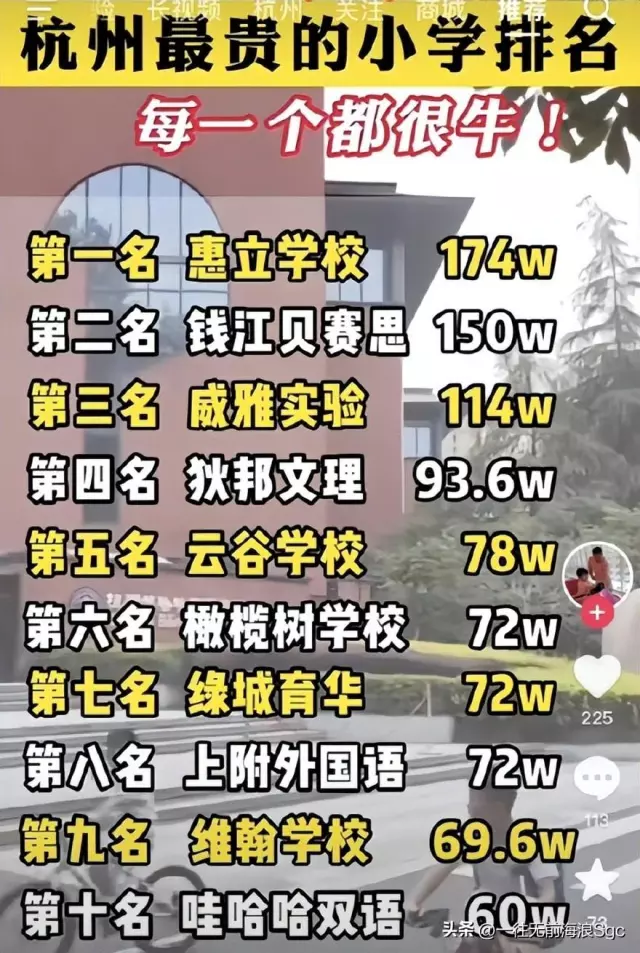 不过在另一则报道中,威雅实验小学的费用是每学期20万,但不管是20万还是114万,都是普通工薪阶级难以承受的价格。