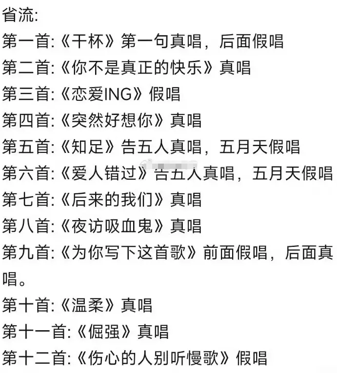 有博主制作视频,对五月天上海演唱会12首歌的真假唱进行鉴定。