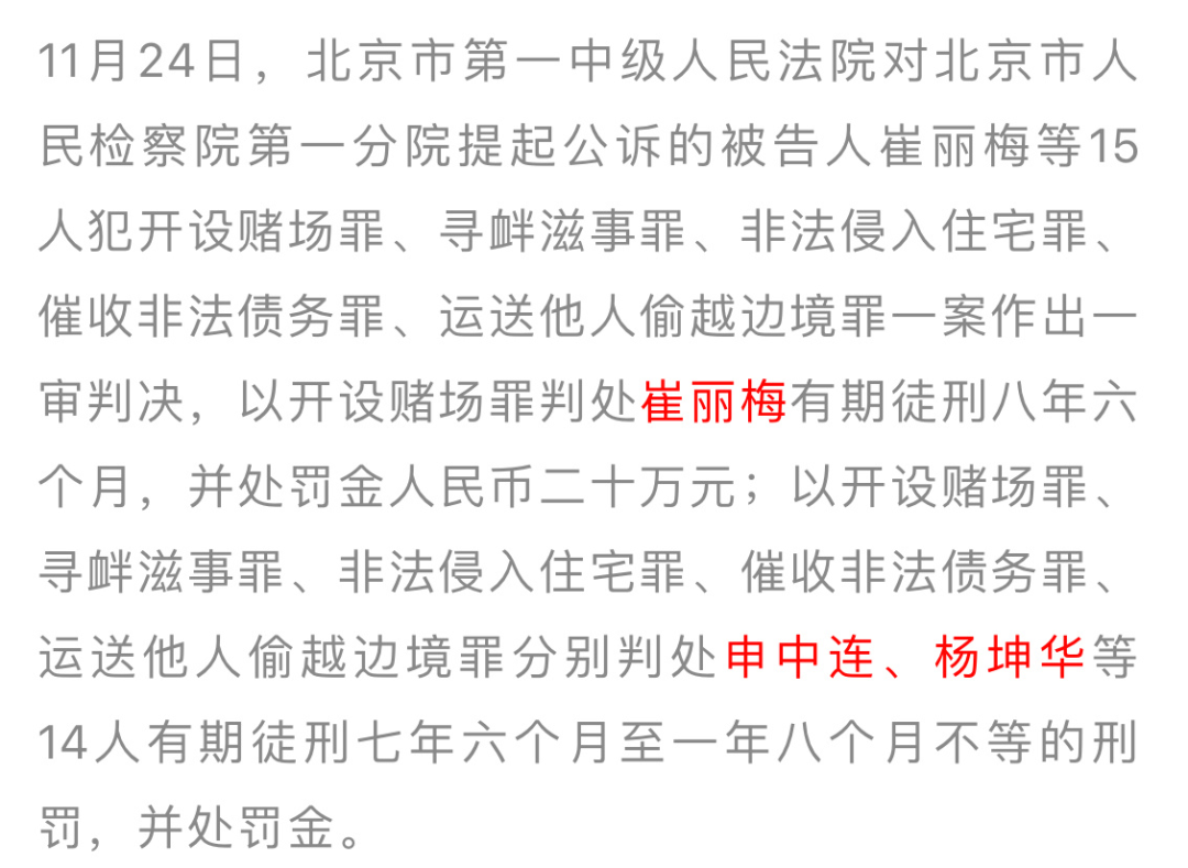 近段时间以来,缅北诈骗案正在被侦破,官方在解救被骗人士回国的过程中,也在追究背后的保护伞,在深入调查过程当中,挖出了以纪晓波姨妈崔丽梅为首的犯罪集团的罪行,北京市第一中级人民法院以开设赌场罪、运送他人偷越边界罪等,判处了崔丽梅八年六个月的有期徒刑,并处罚金人民币20万元。
