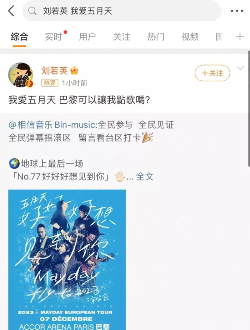 其中,刘若英更是高调转发五月天演唱会海报,喊话:我爱五月天!