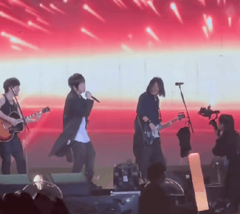 包括照片也能清晰的看到,阿信的话筒在左手上,但他唱歌时却把右手伸了起来,直接对着空气还是对嘴,似乎也是因为现场气氛到了,他已经忘记对嘴这回事儿了。
