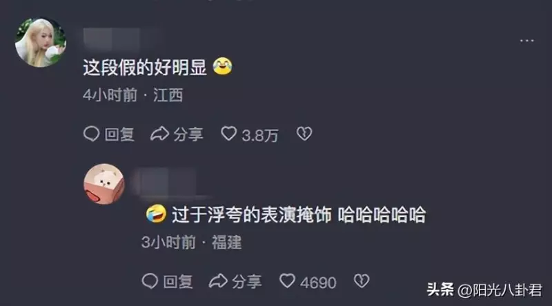 很多网友也直言,这段表演确实假的过于明显了,也过于浮夸了些。