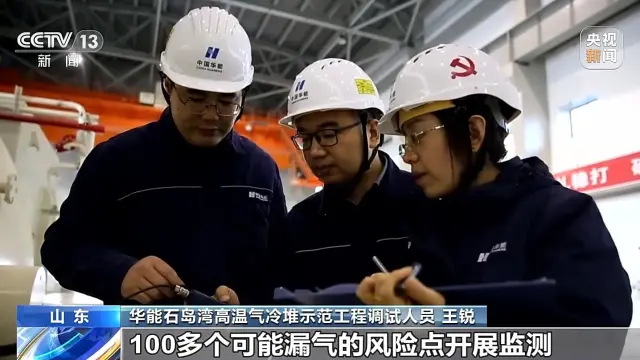 华能石岛湾高温气冷堆示范工程调试人员 王锐:这可以说是罕见的大体积、高气压试验,潜在风险高,我们要对压力容器上100多个可能漏气的风险点开展监测,同时控制它的温度,避免设备损坏。