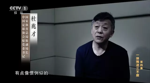 “经常通过送钱送物来疏通办事,在这方面好像形成了一种有点像惯例似的。”杜兆才在专题片中这样说,“自己也没有当好中国足球反腐斗争的一个‘守门员’的作用,在俱乐部老板的利益的‘围猎’当中,实际还是主观原因,没有加以严格地控制,有些随波逐流了。”
