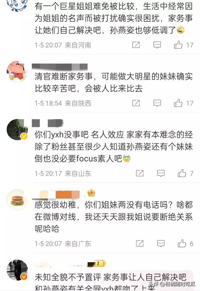 有一个巨星姐姐难免被比较,生活中经常因为姐姐的名声而被打扰确实很困扰,家务事让她们自己解决吧,孙燕姿也够低调了。