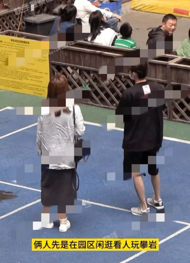 张翰与女子到达园区后,两人先是一起观看他人攀岩,前方的大哥应该是认出张翰了,于是便扭过头朝着他露出笑容。