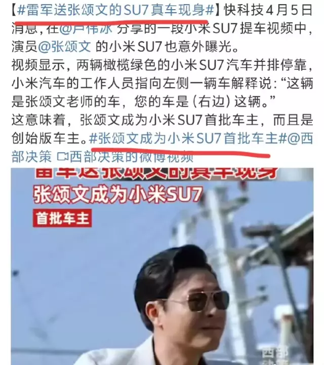 近日,小米SU7的首批车主名单揭晓,引发了广泛关注。其中,知名演员张颂文成为了尊享创始版车主,这一消息不仅彰显了小米SU7的市场魅力,更体现了张颂文对小米品牌的深厚情感与坚定支持。