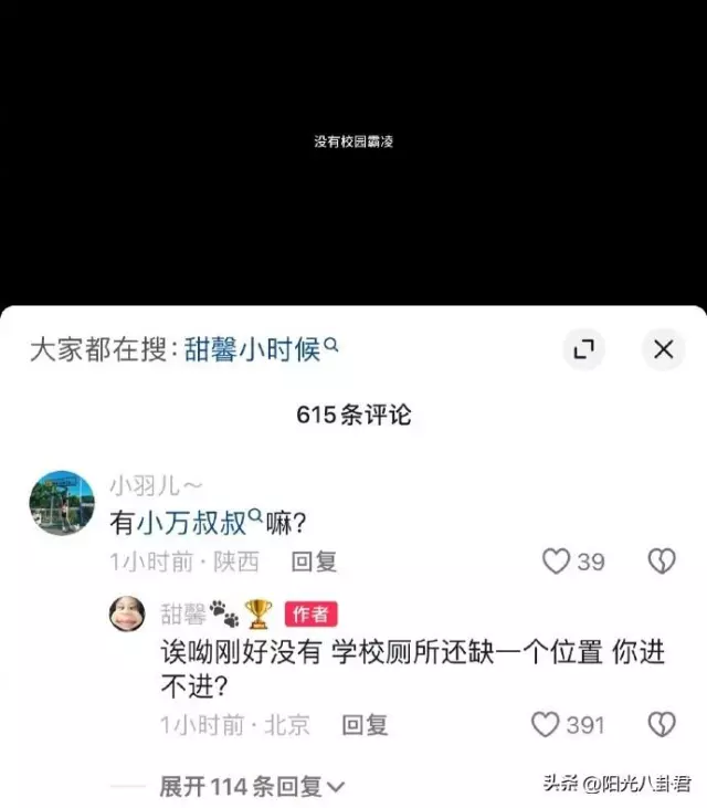 对此,甜馨则是直接回怼对方:“诶呦刚好没有,学校厕所还缺一个位置,你进不进?”