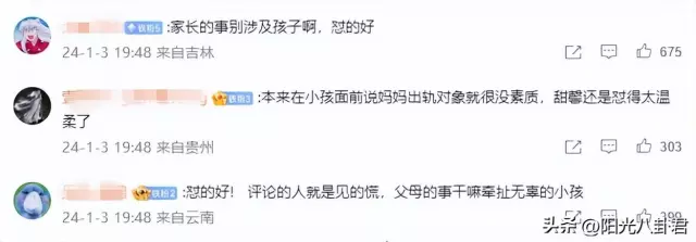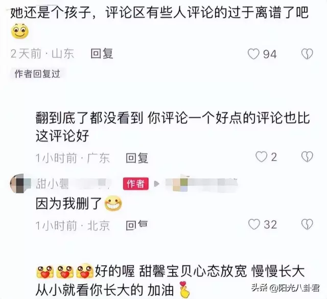 不得不说,作为一名只有11岁的孩子,甜馨经历过可能超出了很多人的想象,更很难想象,她看到这些评论时,内心是何种想法,又是如何做到面不改色强硬回怼的。