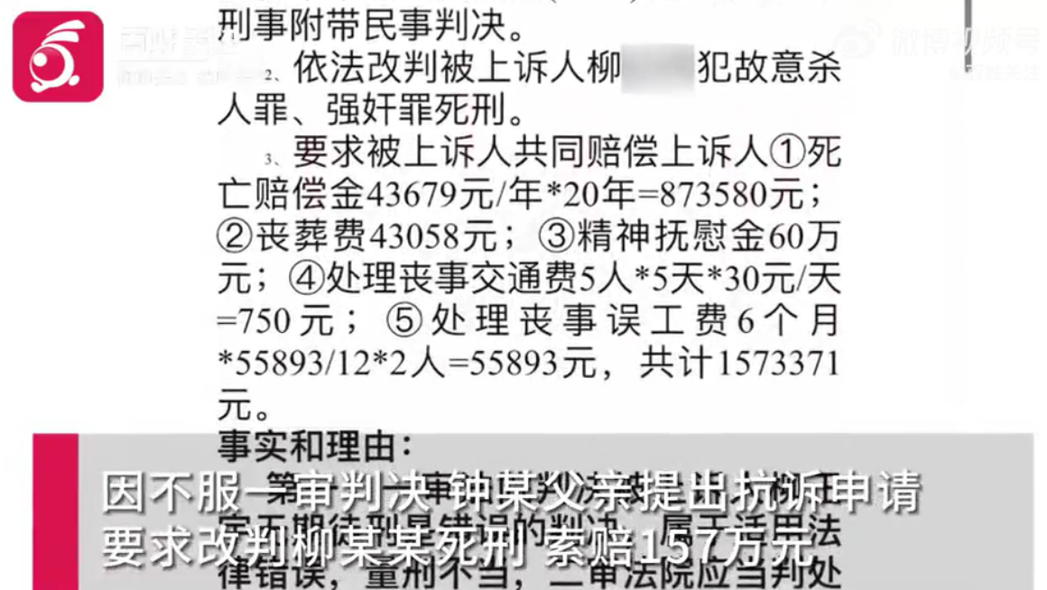 2023年7月宜春中院以故意杀人罪、强奸罪判处柳某某无期徒刑,支付赔偿5.5万余元。