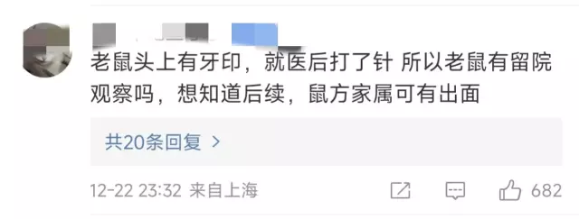 老鼠头上有牙印,就医后打了针 所以老鼠有留院观察吗,想知道后续,鼠方家属可有出面。