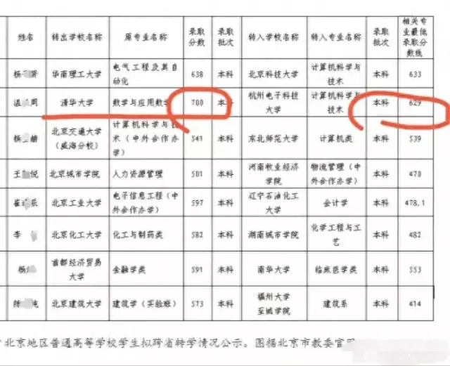 这个学生当初以700多分的成绩考取了清华大学,显然是当地数一数二的学霸,而现在转入的学校分数线比清华少了70多分。真让人匪夷所思。