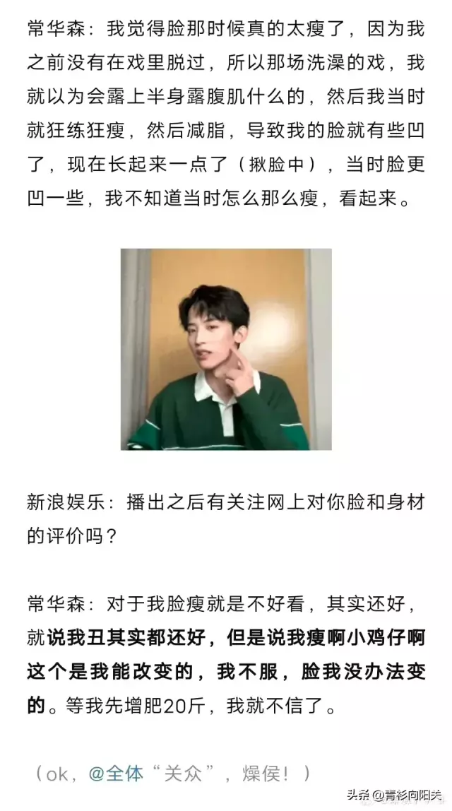 “他的脸像摇号,时好时坏”,常华森回应这个我觉得好好笑,这个比喻很恰当希望发挥稳定一些吧,希望我的脸摇的好一些吧,不管是恶评也好什么评也好,他们一定会说这些话一定是有他们自己的原因的,我觉得理解并且反思吧。