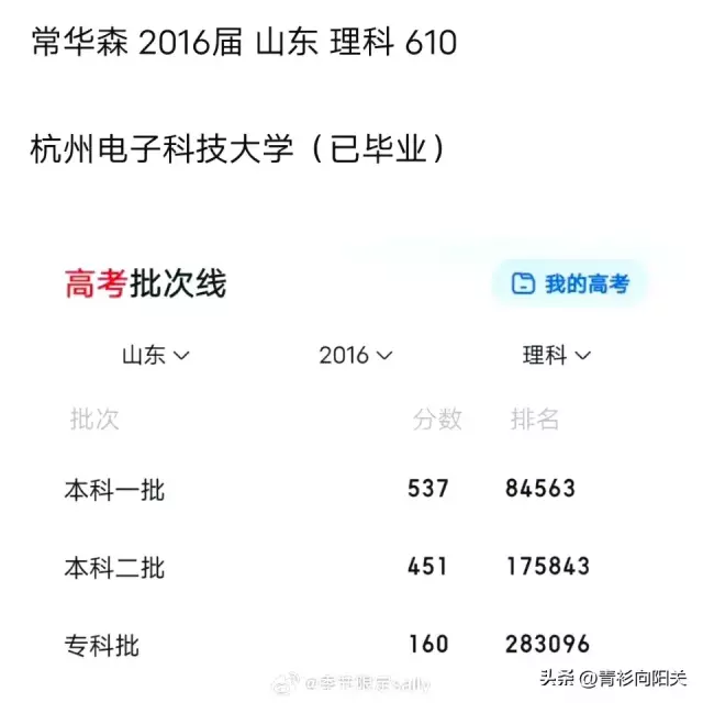 而常华森610分,毕业于杭州电子科技大学,(中国四所电子科技大学之一)那年大厂里别人都唱歌跳舞,他默默锡焊,最后做成了一个收音机。