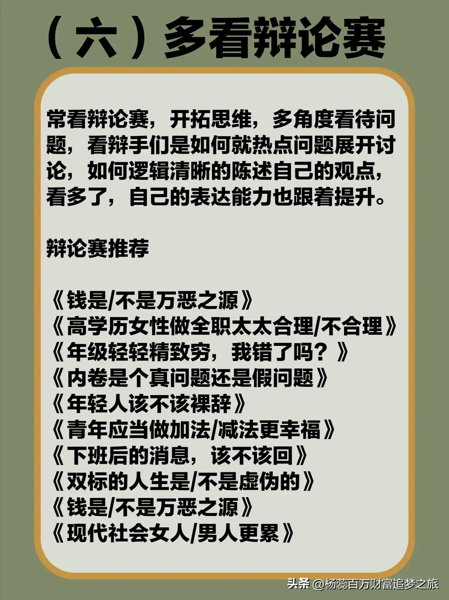 第六:多看辩论赛。