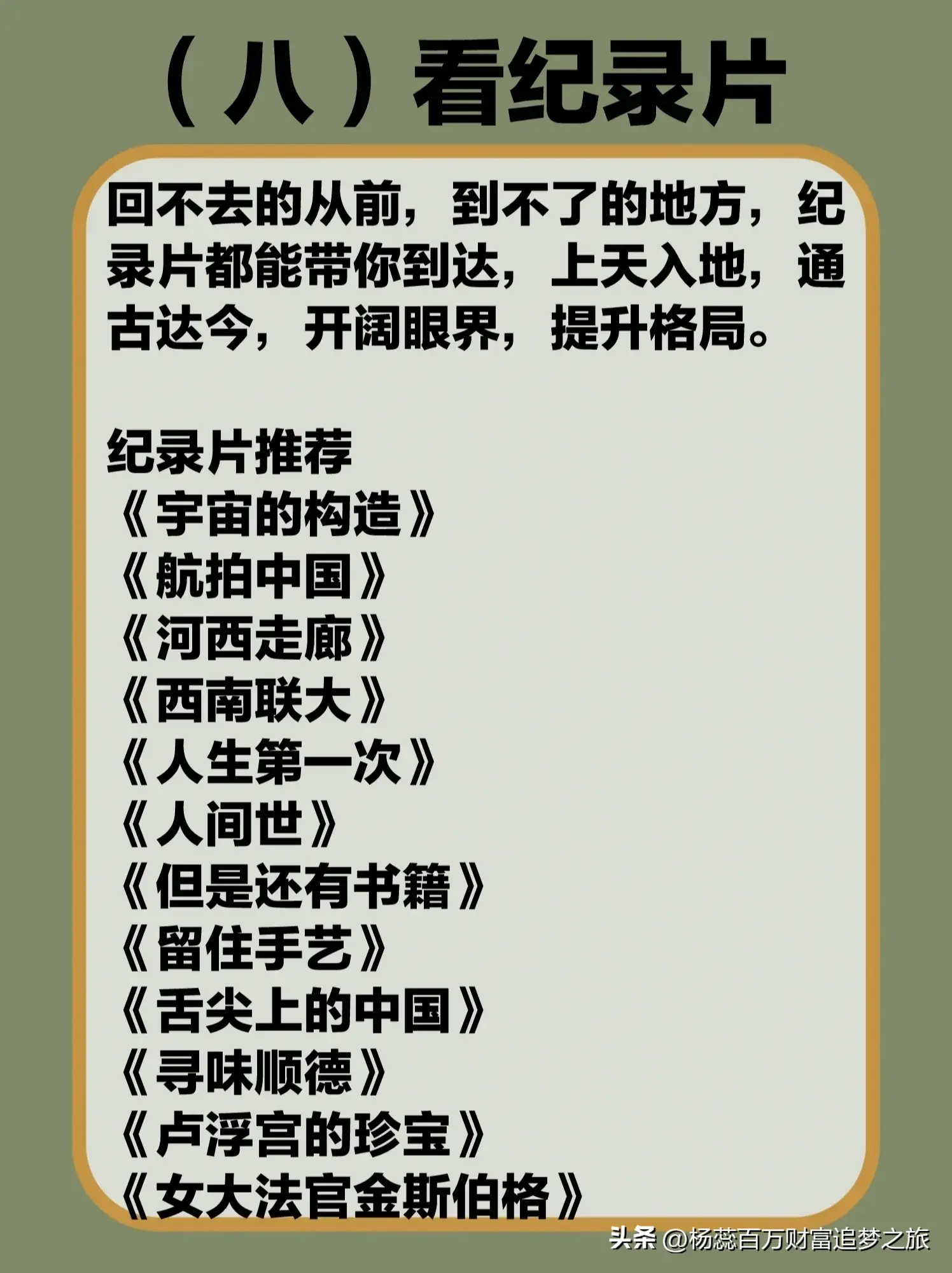 第八:看纪录片。