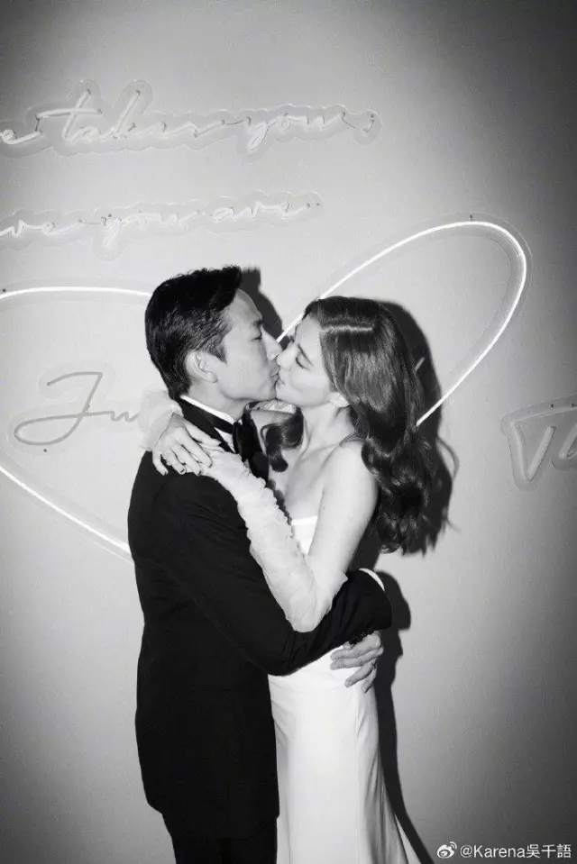 吴千语晒婚纱照官宣结婚,与老公施伯雄甜蜜拥吻,计划明年办婚礼