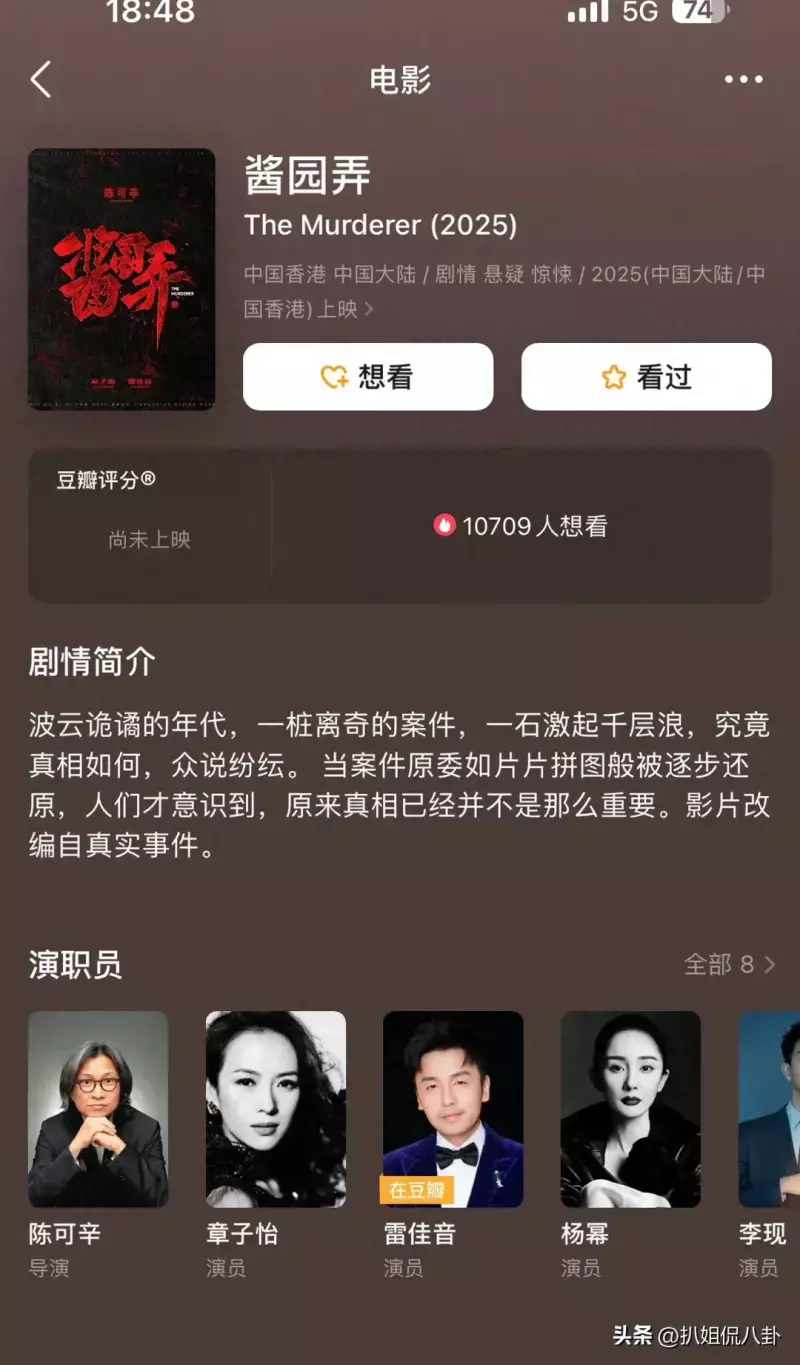 就是说,我们国际影后章子怡,一出马绝对是超强卡司。她的新电影《酱园弄》导演是陈可辛,陈可辛大家知道吧,《甜蜜蜜》《如果爱》《中国合伙人》《亲爱的》都是他拍的。拍陈可辛的电影基本上都能拿到影帝影后,就是这么厉害。